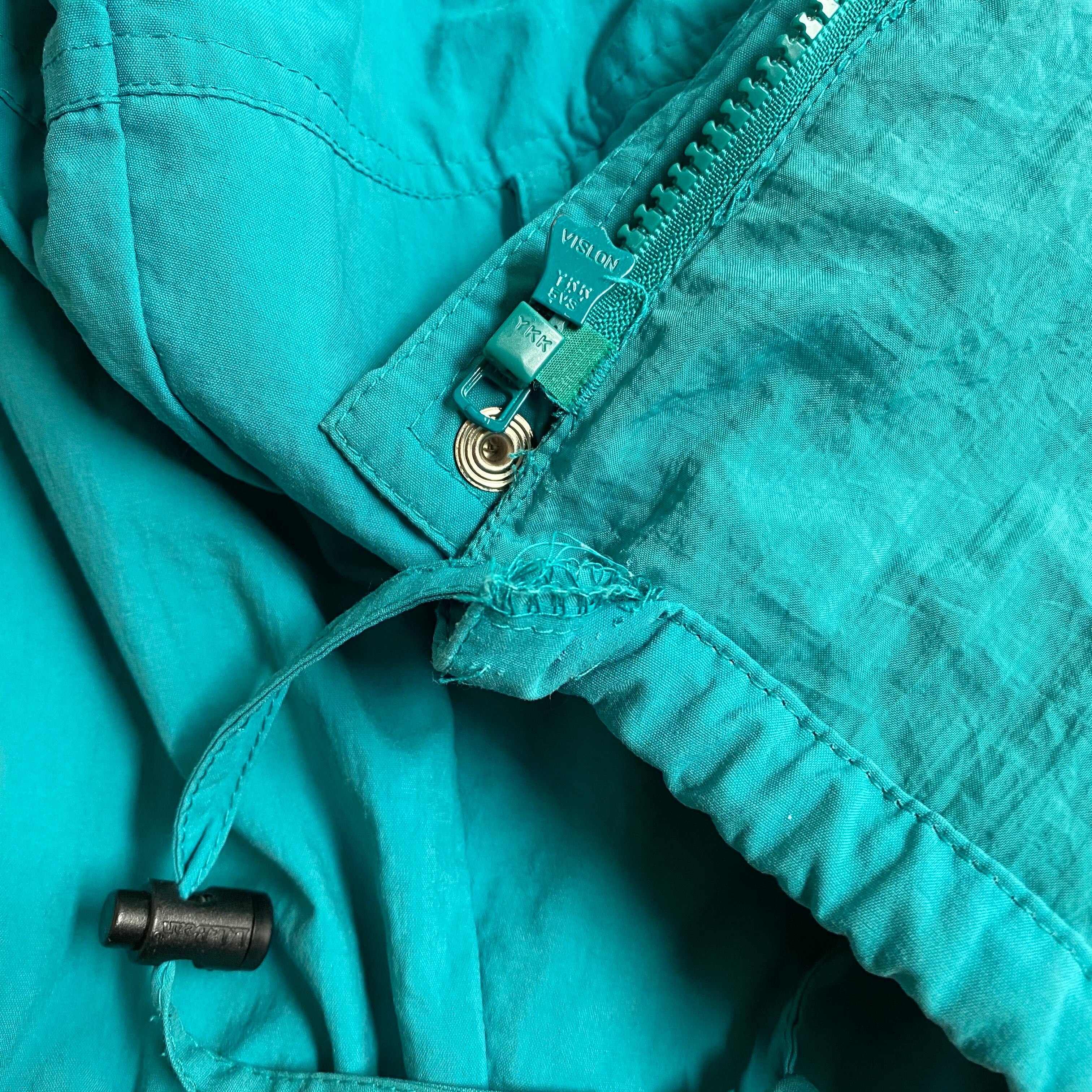 ドローコード裏側のステッチのほつれがありますが問題なく使用できます。後ろ見頃に1箇所薄汚れ、他は特に大きく目立つようなダメージや汚れ等のないコンディションです。