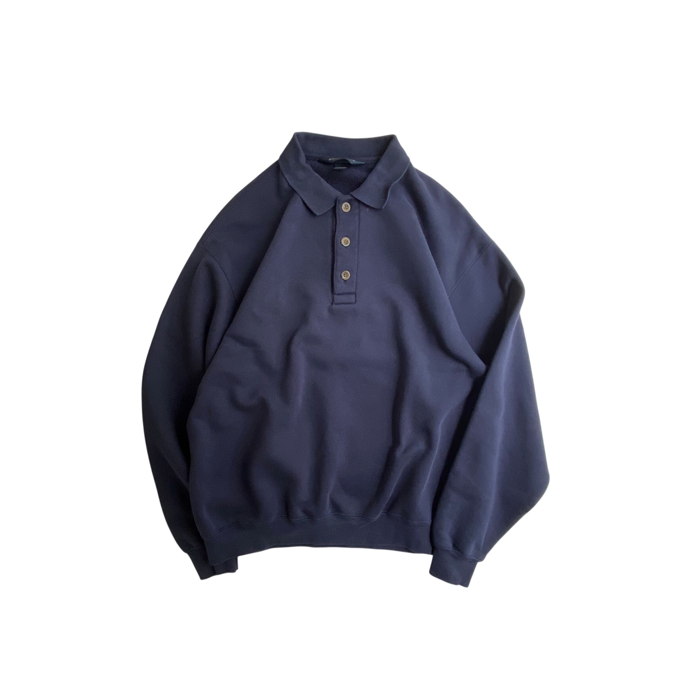 ネイビーカラーの襟付きスウェット!あまり見ないですね。