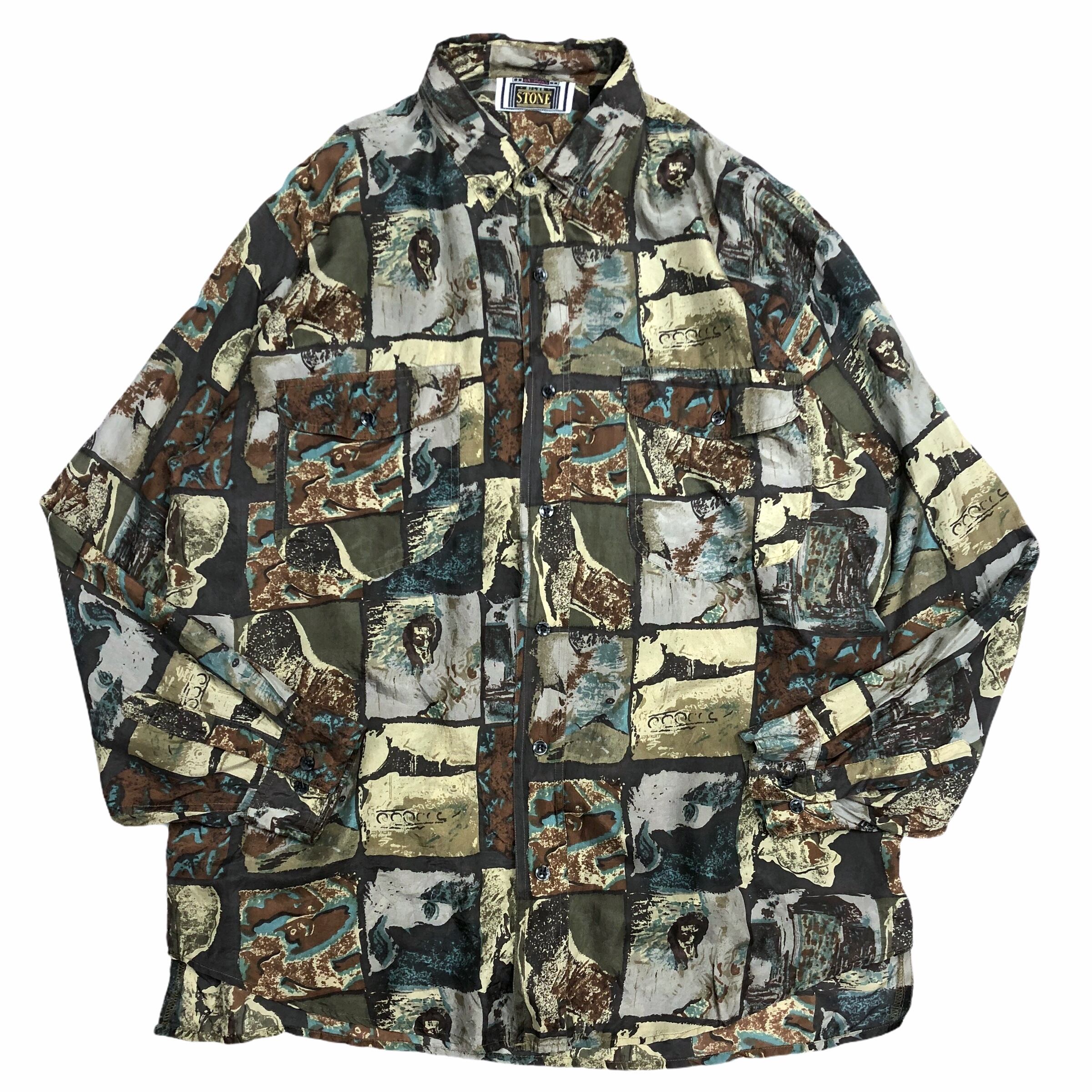 【柄シャツ】シルクシャツ 古着