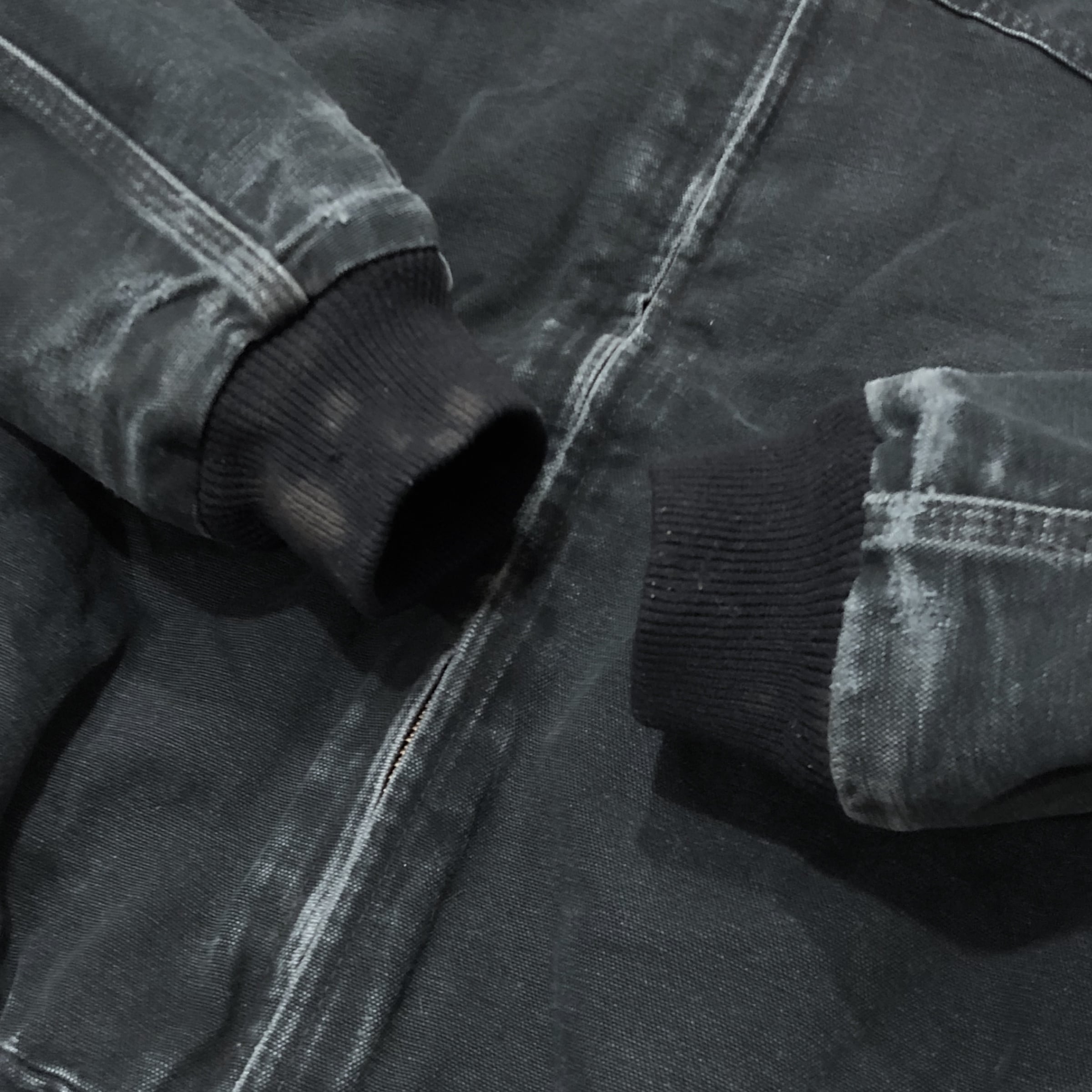 袖口や腕部分に画像の様な汚れとダメージがございますが全体の色もカーハートらしい雰囲気になっておすすめの一枚です。
