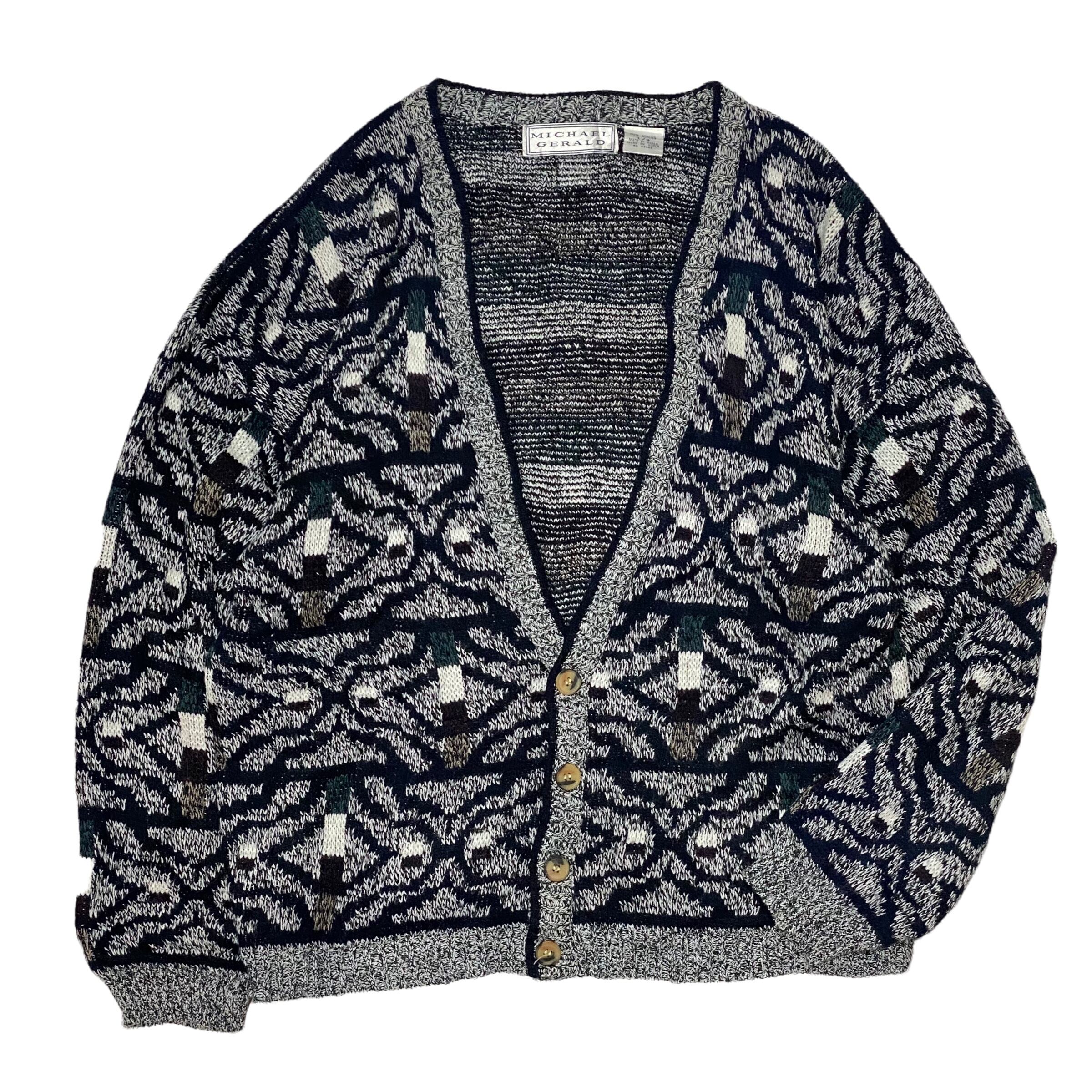 総柄 デザインカーディガン アクリル 古着