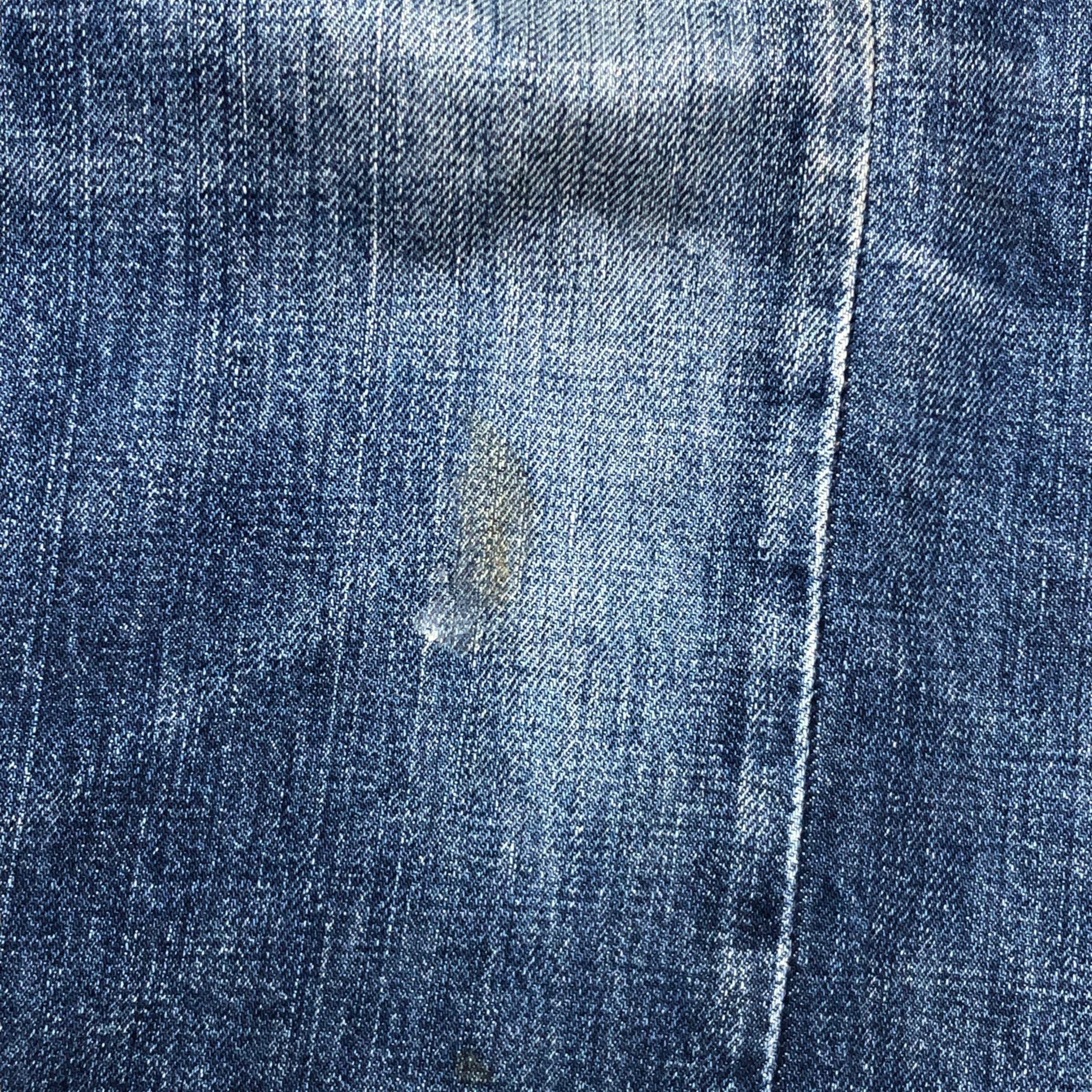 擦れ、汚れ、ダメージがありますが色落ちはヴィンテージデニムならではの雰囲気ある一着になっております。