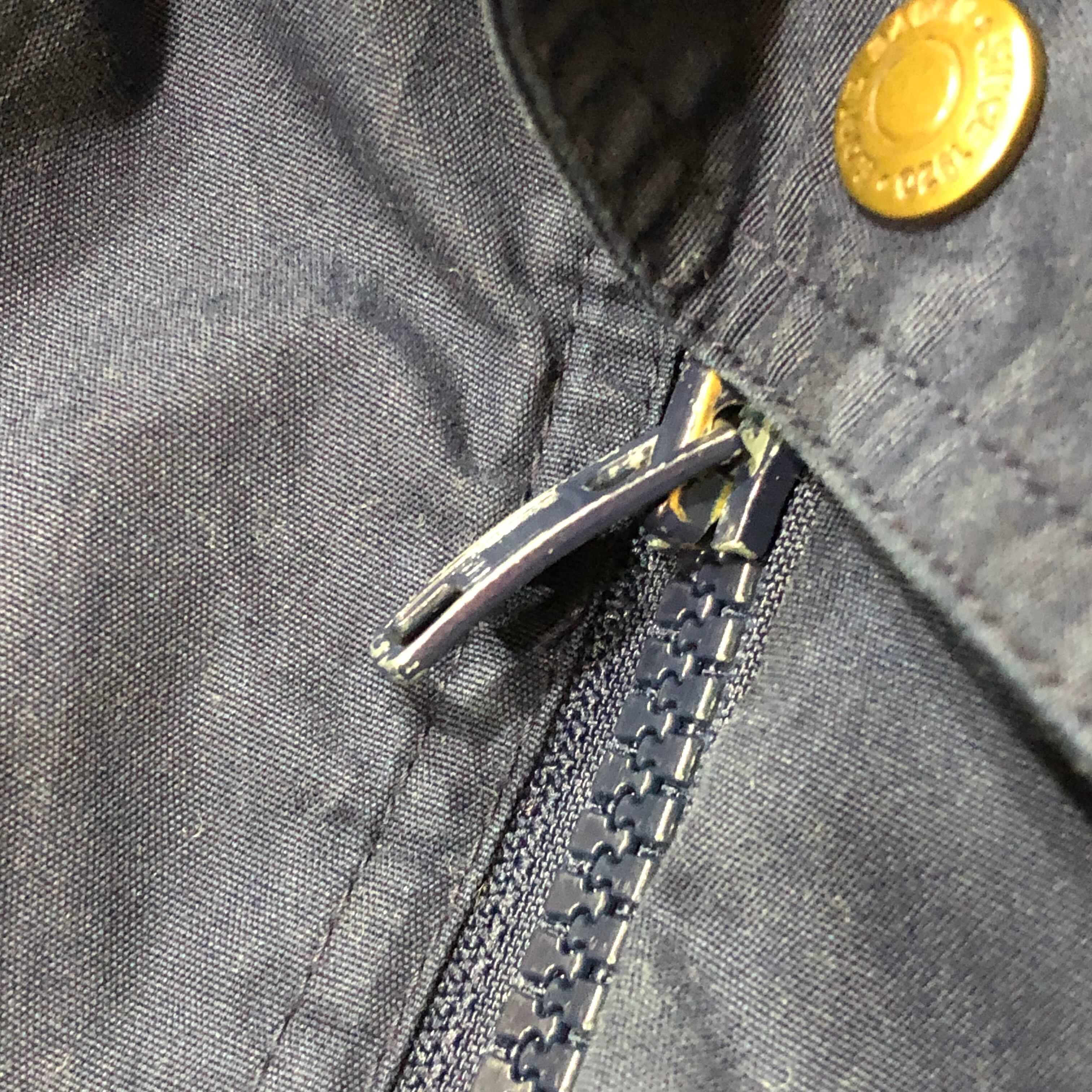 若干の着用感あり後ろ裾に小穴がありフロントジップのヘッドが曲がっておりますが開け閉めには問題ございません。ほかは特に大きく目立つダメージ等なく問題なく着用可能なコンディションです。