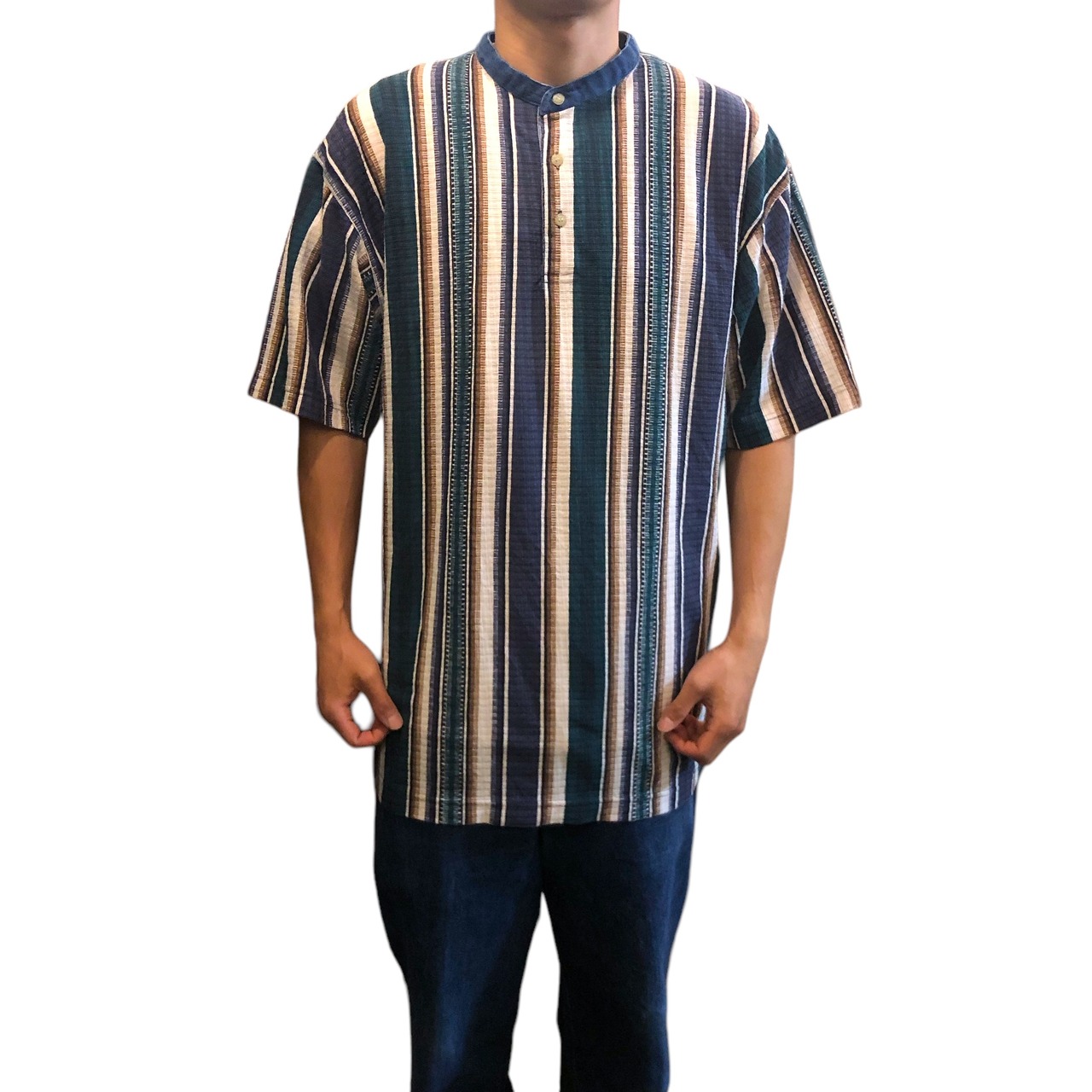 【ノーカラー】プルオーバーシャツ 古着