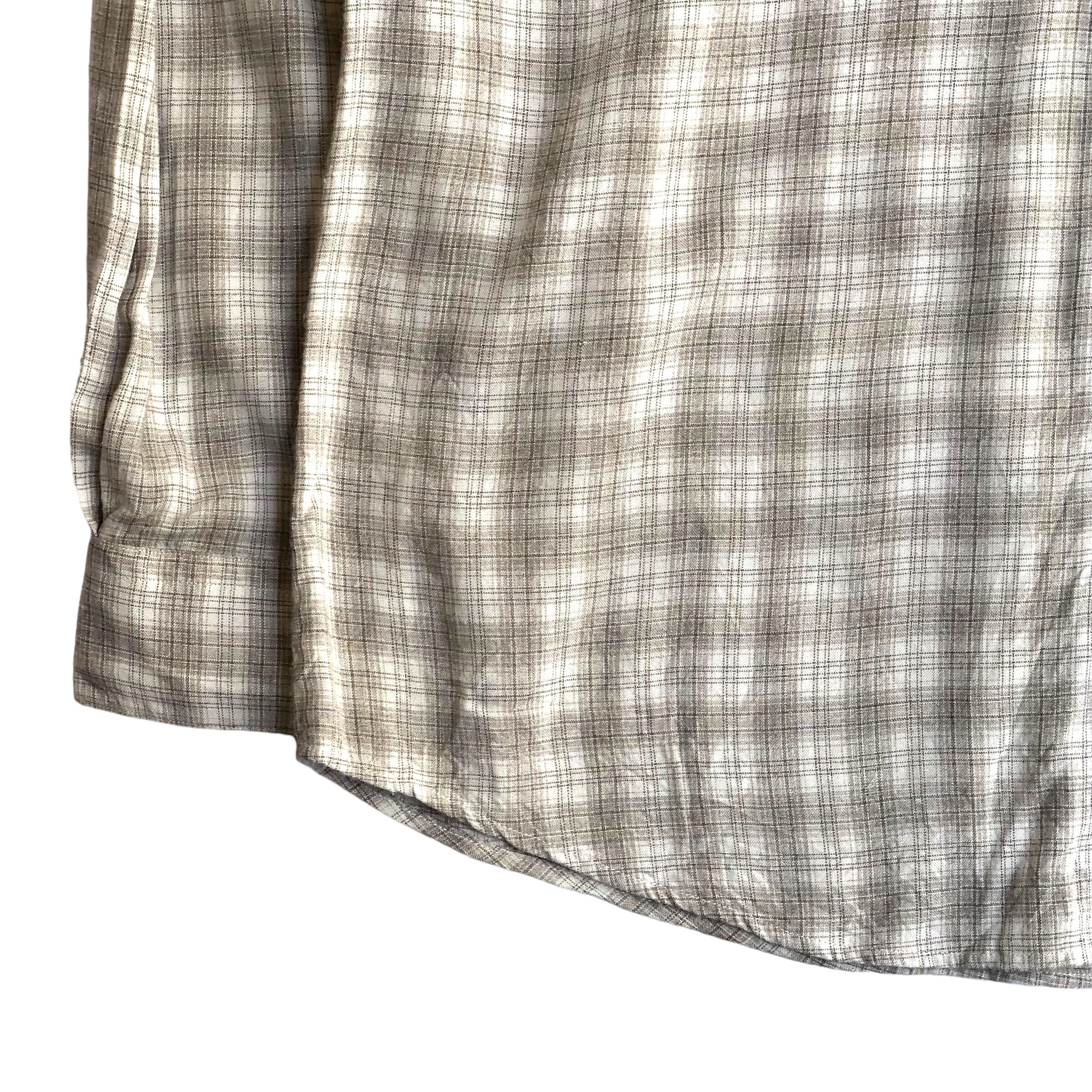 【PERRY ELLIS】ノーカラー チェック レーヨンシャツ USA製