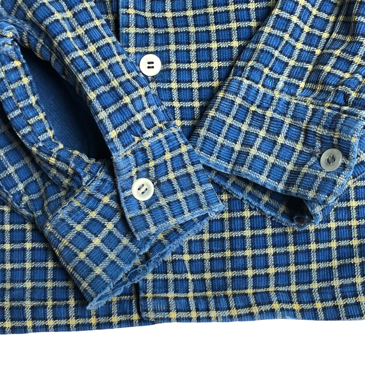 フロントボタン部分、袖、襟元、裾ににほつれ、袖部分に擦り切れ、トップボタンホールが緩んでいるので閉めて着用する際に取れてしまいます。全体的に雰囲気系になるので多少の見落としがあるかもしれません。