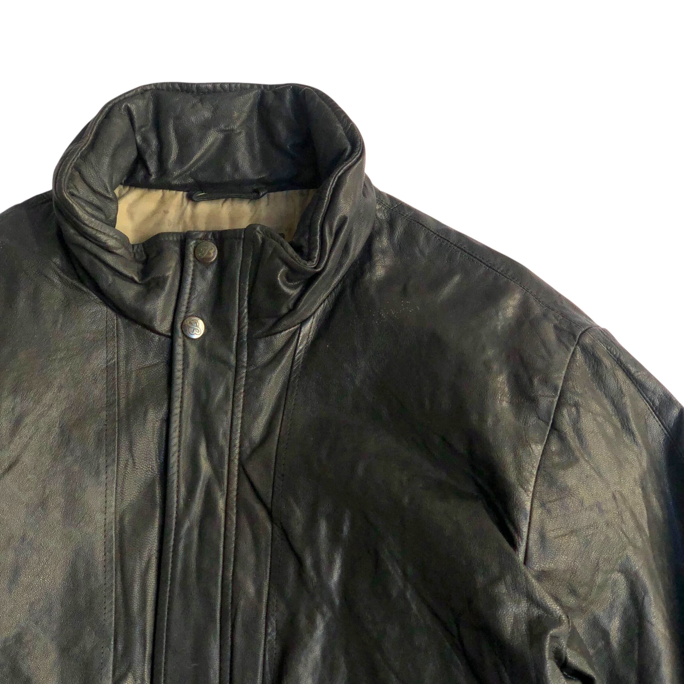 レザーのシワ感、全体的に若干の薄汚れ、フロントポケット付近のスレ、裏地ダウン部分の薄汚れがありますがどれも大きく目立ちません。