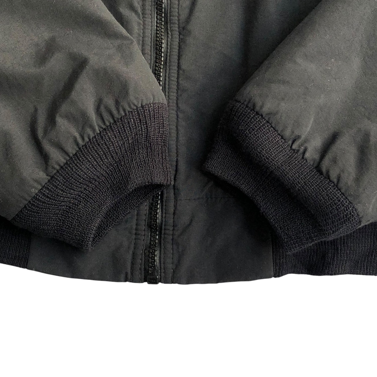 ジップのヘッドが紐に交換されており、右袖リブ部分に破れがあり、袖、裾付近のリブが弱まっておりますが他は特に大きく目立つようなダメージや汚れ等のないコンディションです。